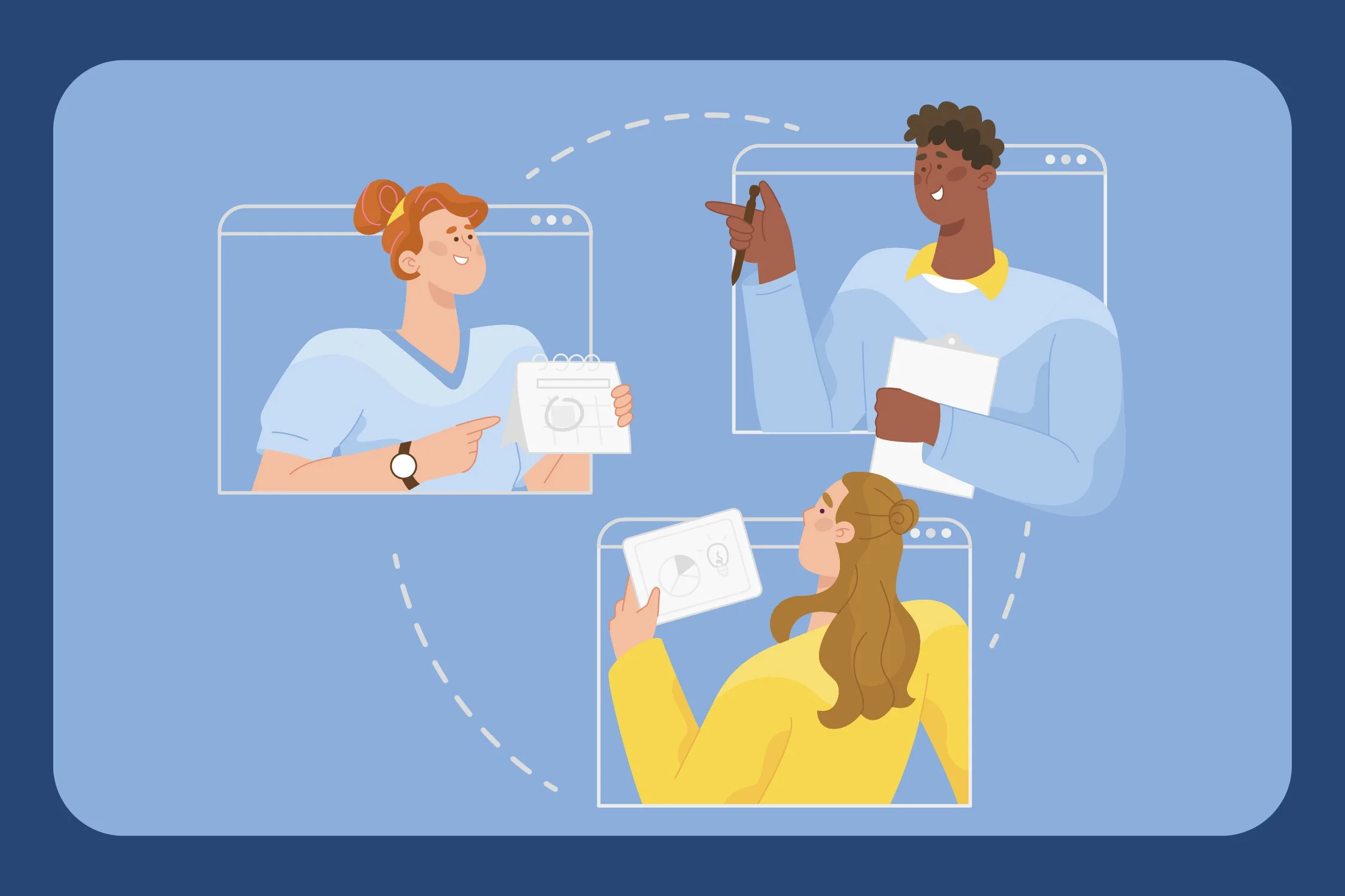 Mengobrol dengan seseorang di co-working space, studio, atau saluran Slackmu